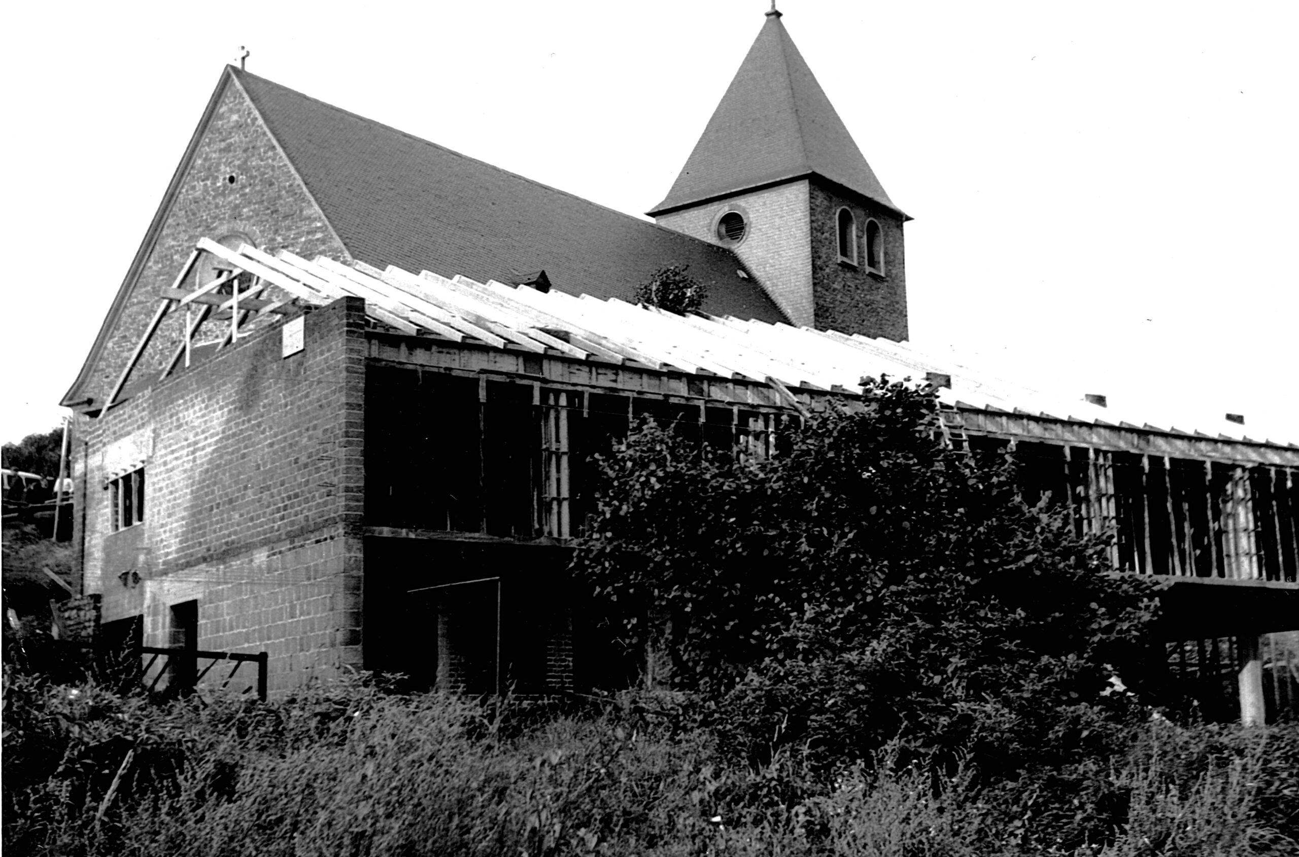 Als Bauplatz der neuen Kirche fiel die Wahl auf bisher als Feld und Garten genutzte Grundstücke unterhalb des schon bestehenden Friedhofes. 1951 waren die Bauarbeiten, die größtenteils durch freiwillige Arbeit der Mitglieder des Kirchbauvereins erledigt wurden, so weit fortgeschritten, dass am 29. Juni der Grundstein gelegt werden konnte. Genau ein Jahr später, am 29. Juni 1952, wurde die Unterkirche eingeweiht, in der ab da auch Gottesdienste gehalten wurden. Die komplette Unterkirche war im Frühjahr 1953 fertig.