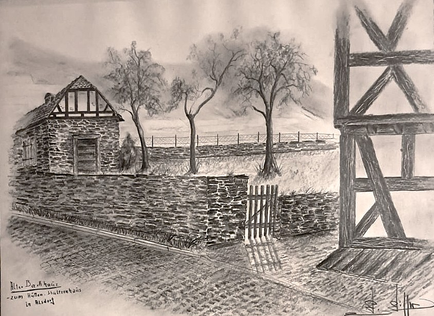 Vom Backes am Hüttenschulzenhaus ist leider nur noch eine Zeichnung von Werner Wisser übrig geblieben.