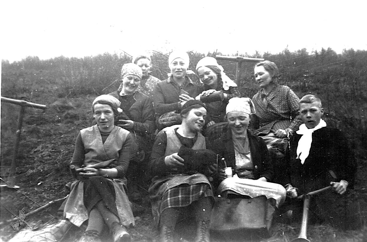 Pause von der anstrengenden Arbeit im Hauberg beim „Dännscher setzen“ (Fichtensetzlinge pflanzen).
