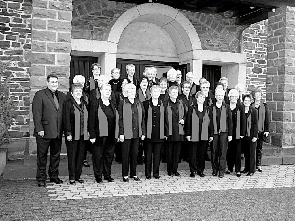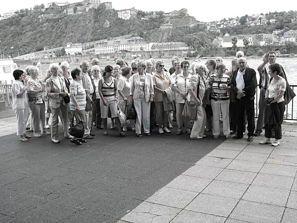 Mitglieder des Kirchenchores im Jahre 2008 bei einem Ausflug nach Koblenz vor der Kulisse der Festung Ehrenbreitstein.